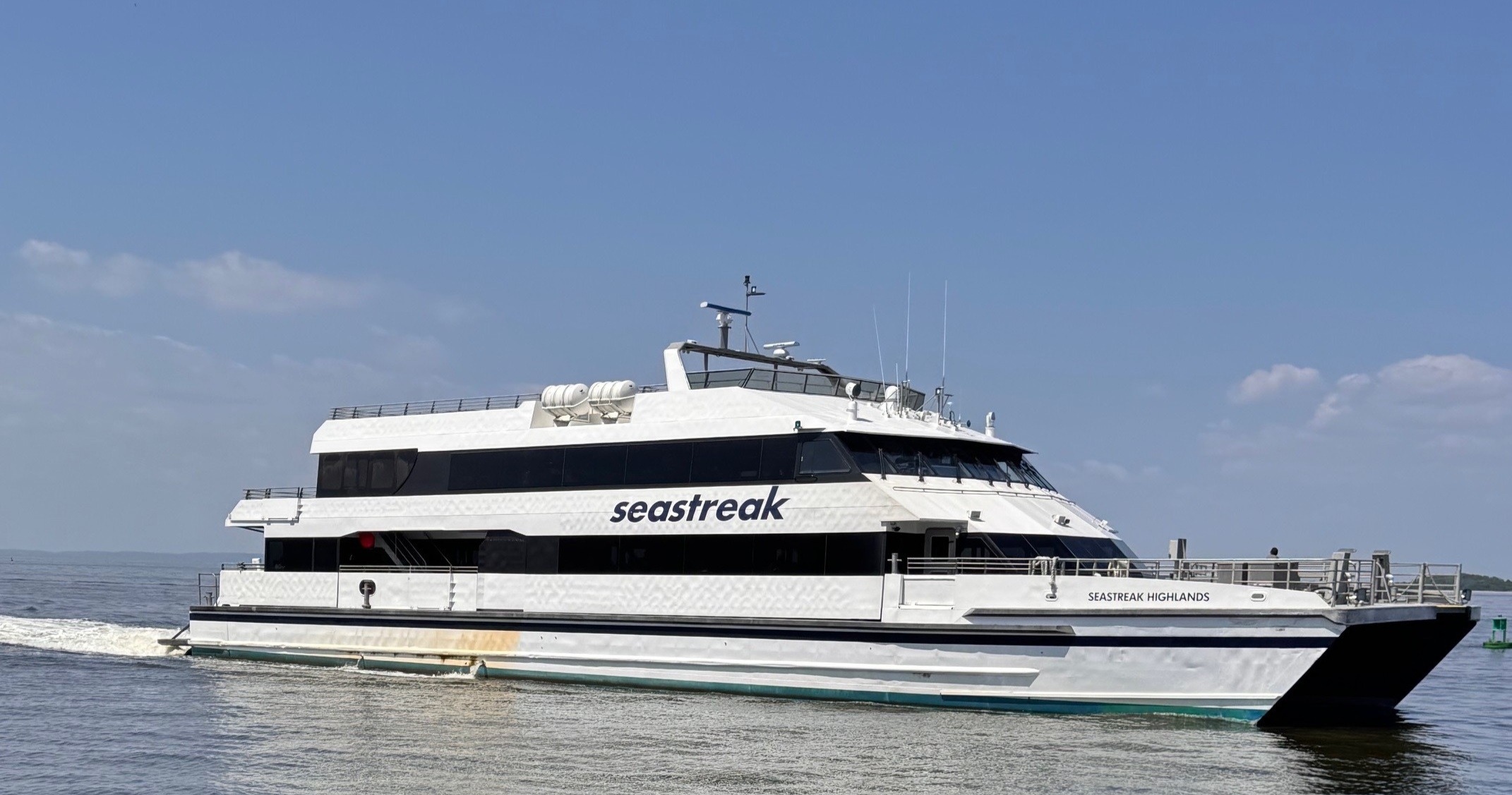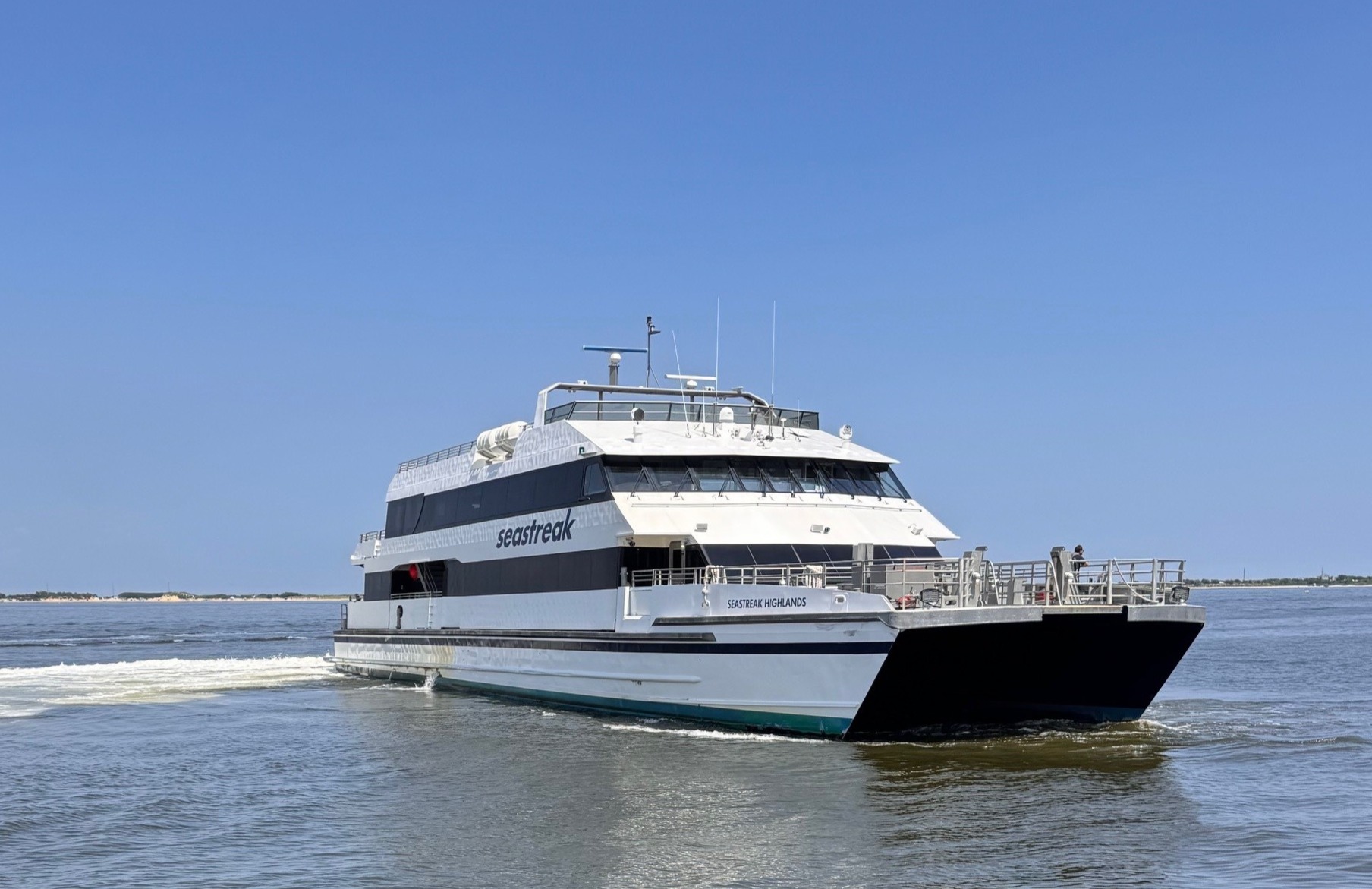 Under the DERA National Program, EPA awarded $1.8 million to Connecticut Maritime Foundation to repower propulsion engines, auxiliary generator sets, and related equipment on a catamaran ferry operated by Seastreak. Replacing the older Tier 1 engines with cleaner Tier 3 versions achieved major reductions in harmful pollutants, eliminating 135 tons of nitrogen oxides and 3 tons of fine particles each year. The repower proved an opportunity not only to reduce emissions but also to maximize efficiency. The vessel was re-engineered with only two propulsion engines, down from the original four. The total vessel horsepower dropped from 7,500 to 5,360 while still providing for all the power needs of the high-speed catamaran. The ferry services routes between New York City and Central New Jersey, helping to modernize a service that keeps thousands of cars off congested roadways.